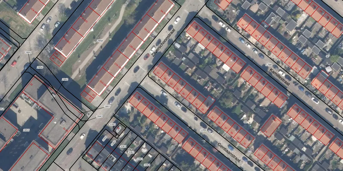 Het perceel waarop Gentiaanstraat 53 staat heeft een oppervlakte van 6743 m². Dit is een zeer groot perceel. De perceeloppervlakte wordt geregistreerd door het Kadaster. Gedetailleerde informatie over de maten van dit perceel kunt u vinden in het rapport Kadastrale kaart met maatvoering van Gentiaanstraat 53.