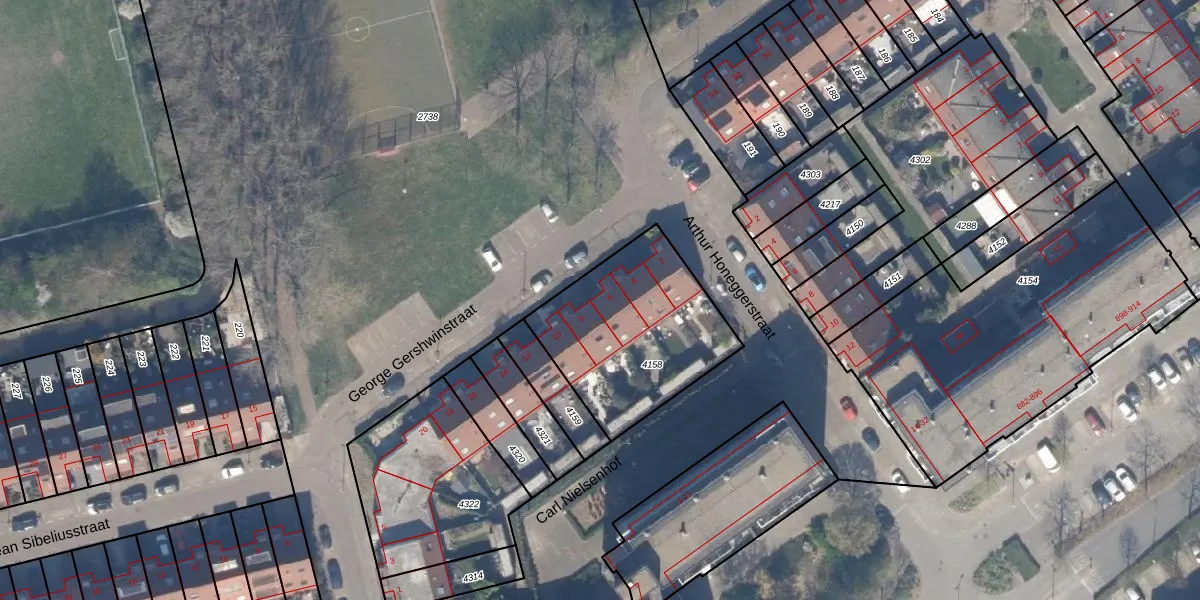 Het perceel waarop George Gershwinstraat 6 staat heeft een oppervlakte van 689 m². Dit is een groot perceel. De perceeloppervlakte wordt geregistreerd door het Kadaster. Gedetailleerde informatie over de maten van dit perceel kunt u vinden in het rapport Kadastrale kaart met maatvoering van George Gershwinstraat 6.
