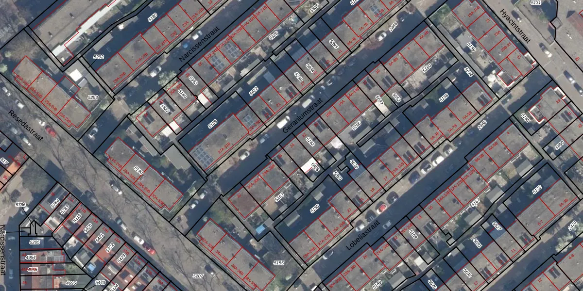 Geraniumstraat 24 is gelegen op kadastraal perceel CLS00G5858. Deze kadastrale aanduiding is uniek en wordt gebruikt door het Kadaster om eigendomsrechten en andere zakelijke rechten vast te leggen. Het perceel maakt onderdeel uit van de kadastrale gemeente Charlois.