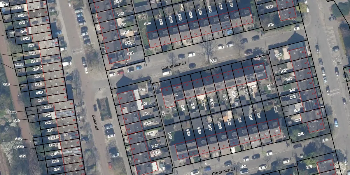 Het perceel waarop Gerardskruid 18 staat heeft een oppervlakte van 150 m². Dit is een middelgroot perceel. De perceeloppervlakte wordt geregistreerd door het Kadaster. Gedetailleerde informatie over de maten van dit perceel kunt u vinden in het rapport Kadastrale kaart met maatvoering van Gerardskruid 18.