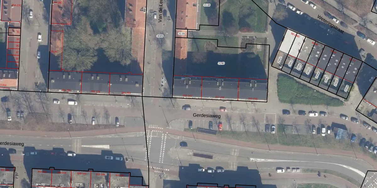 Gerdesiaweg 215 is gelegen op kadastraal perceel KLG00F3140. Deze kadastrale aanduiding is uniek en wordt gebruikt door het Kadaster om eigendomsrechten en andere zakelijke rechten vast te leggen. Het perceel maakt onderdeel uit van de kadastrale gemeente Kralingen.