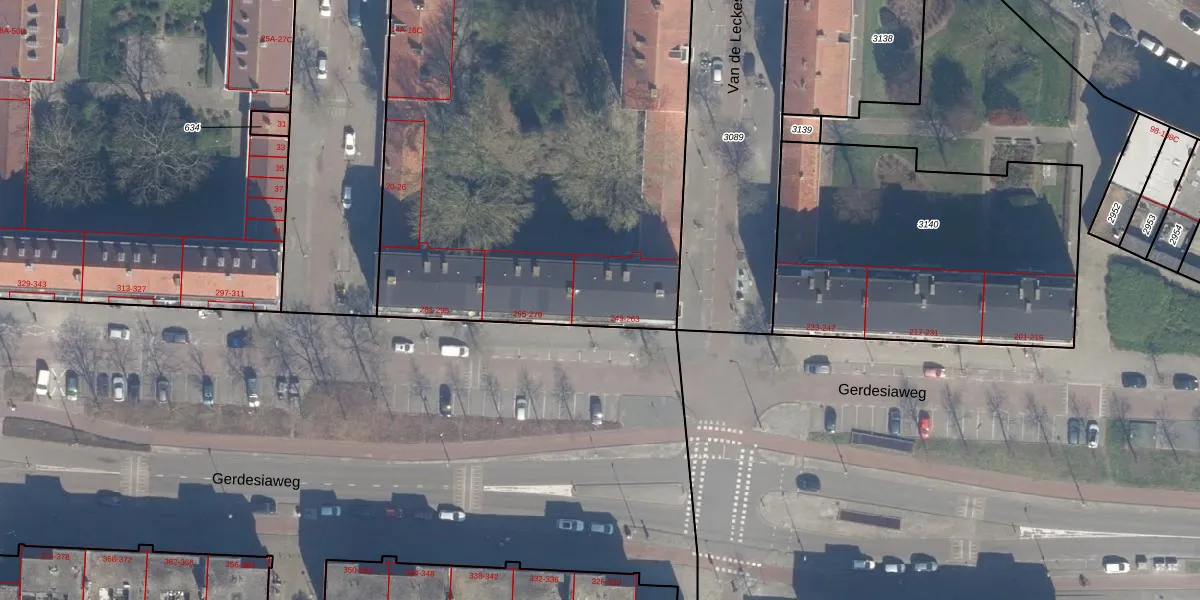 Gerdesiaweg 263 is gelegen op kadastraal perceel RTD04AE493. Deze kadastrale aanduiding is uniek en wordt gebruikt door het Kadaster om eigendomsrechten en andere zakelijke rechten vast te leggen. Het perceel maakt onderdeel uit van de kadastrale gemeente Rotterdam.