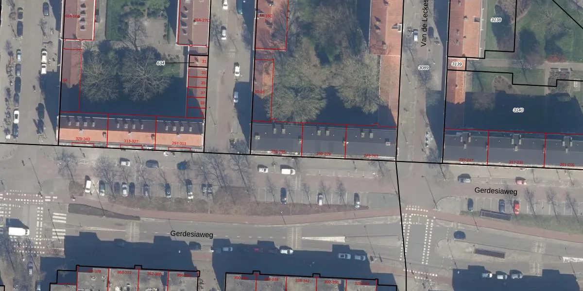 Het perceel waarop Gerdesiaweg 269 staat heeft een oppervlakte van 5970 m². Dit is een zeer groot perceel. De perceeloppervlakte wordt geregistreerd door het Kadaster. Gedetailleerde informatie over de maten van dit perceel kunt u vinden in het rapport Kadastrale kaart met maatvoering van Gerdesiaweg 269.