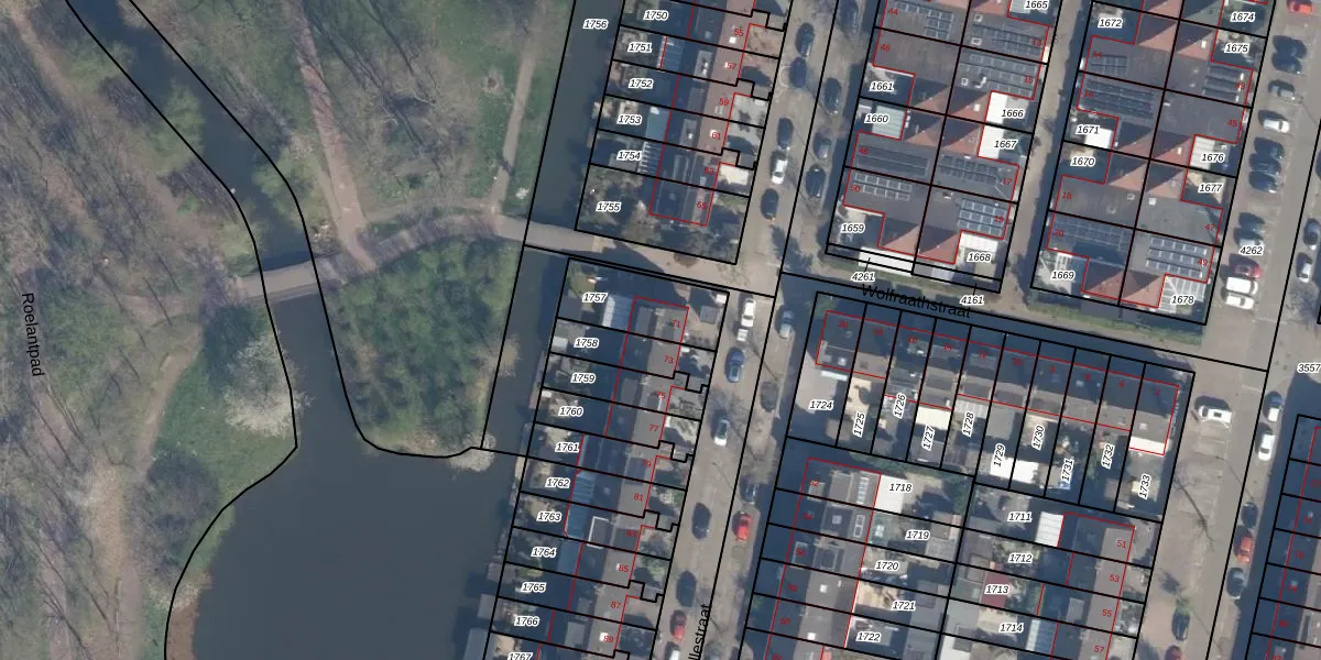 Gebruik de zoekbalk of klik op een perceel voor informatie over de adressen binnen dit perceel.