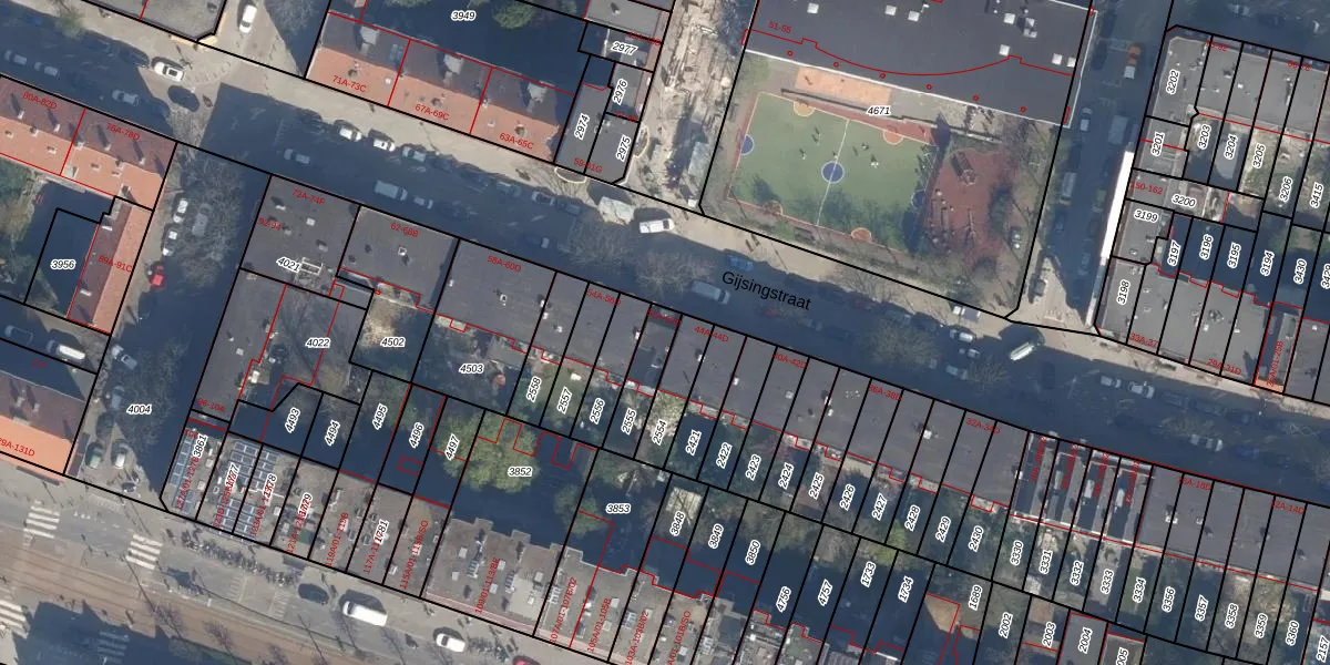 Het perceel waarop Gijsingstraat 52-A staat heeft een oppervlakte van 115 m². Dit is een middelgroot perceel. De perceeloppervlakte wordt geregistreerd door het Kadaster. Gedetailleerde informatie over de maten van dit perceel kunt u vinden in het rapport Kadastrale kaart met maatvoering van Gijsingstraat 52-A.