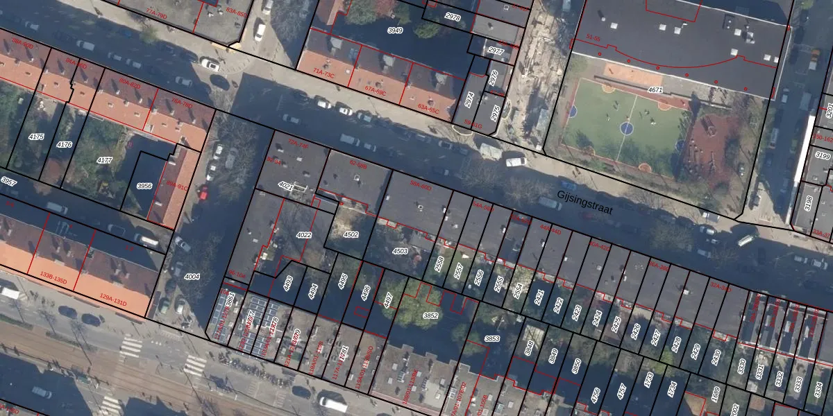 Het perceel waarop Gijsingstraat 58-C staat heeft een oppervlakte van 344 m². Dit is een groot perceel. De perceeloppervlakte wordt geregistreerd door het Kadaster. Gedetailleerde informatie over de maten van dit perceel kunt u vinden in het rapport Kadastrale kaart met maatvoering van Gijsingstraat 58-C.