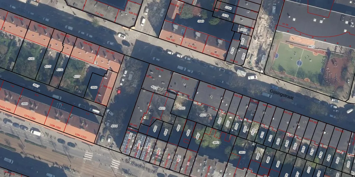 Het perceel waarop Gijsingstraat 68-A staat heeft een oppervlakte van 300 m². Dit is een groot perceel. De perceeloppervlakte wordt geregistreerd door het Kadaster. Gedetailleerde informatie over de maten van dit perceel kunt u vinden in het rapport Kadastrale kaart met maatvoering van Gijsingstraat 68-A.