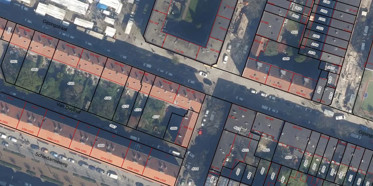 Het perceel waarop Gijsingstraat 78-D staat heeft een oppervlakte van 626 m². Dit is een groot perceel. De perceeloppervlakte wordt geregistreerd door het Kadaster. Gedetailleerde informatie over de maten van dit perceel kunt u vinden in het rapport Kadastrale kaart met maatvoering van Gijsingstraat 78-D.