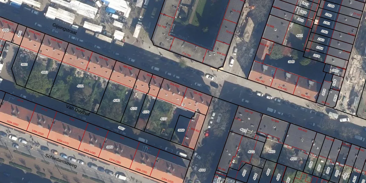 Het perceel waarop Gijsingstraat 80-B staat heeft een oppervlakte van 626 m². Dit is een groot perceel. De perceeloppervlakte wordt geregistreerd door het Kadaster. Gedetailleerde informatie over de maten van dit perceel kunt u vinden in het rapport Kadastrale kaart met maatvoering van Gijsingstraat 80-B.