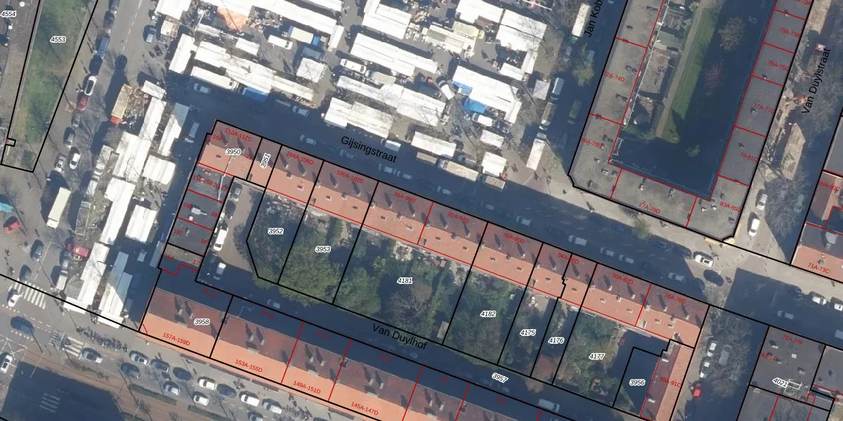 Gijsingstraat 96-D is gelegen op kadastraal perceel DHV00H4181. Deze kadastrale aanduiding is uniek en wordt gebruikt door het Kadaster om eigendomsrechten en andere zakelijke rechten vast te leggen. Het perceel maakt onderdeel uit van de kadastrale gemeente Delfshaven.