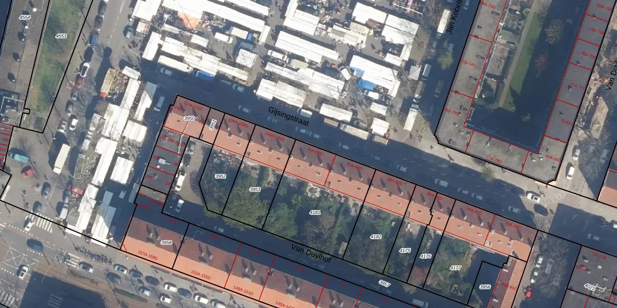 Het perceel waarop Gijsingstraat 98-B staat heeft een oppervlakte van 856 m². Dit is een groot perceel. De perceeloppervlakte wordt geregistreerd door het Kadaster. Gedetailleerde informatie over de maten van dit perceel kunt u vinden in het rapport Kadastrale kaart met maatvoering van Gijsingstraat 98-B.