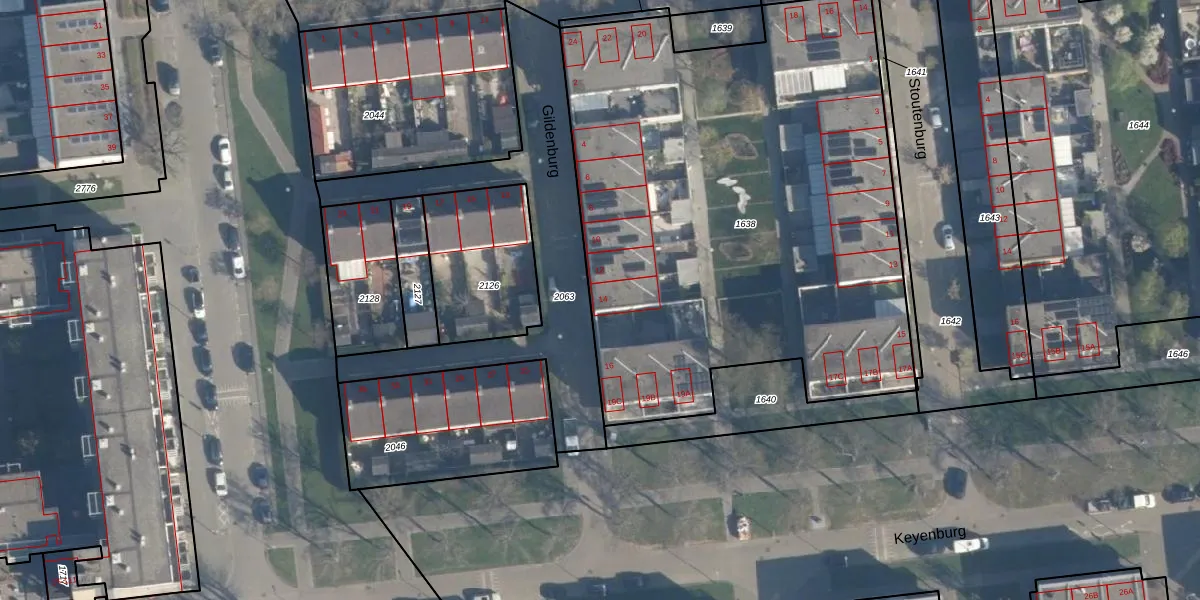 Gildenburg 14 is gelegen op kadastraal perceel CLS00K1638. Deze kadastrale aanduiding is uniek en wordt gebruikt door het Kadaster om eigendomsrechten en andere zakelijke rechten vast te leggen. Het perceel maakt onderdeel uit van de kadastrale gemeente Charlois.