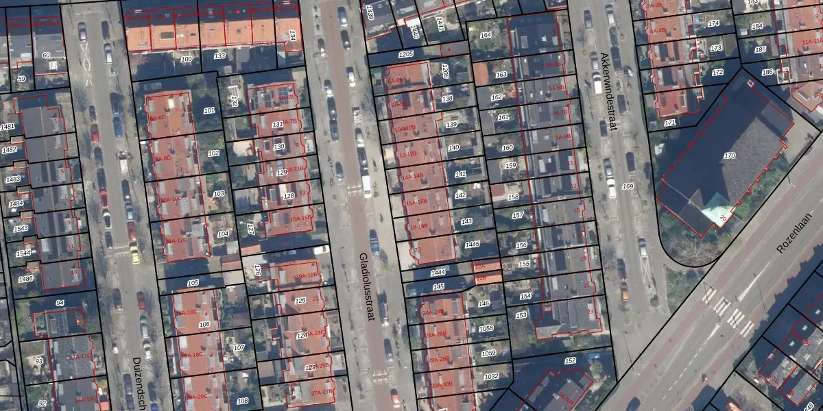 Het perceel waarop Gladiolusstraat 16-A staat heeft een oppervlakte van 148 m². Dit is een middelgroot perceel. De perceeloppervlakte wordt geregistreerd door het Kadaster. Gedetailleerde informatie over de maten van dit perceel kunt u vinden in het rapport Kadastrale kaart met maatvoering van Gladiolusstraat 16-A.