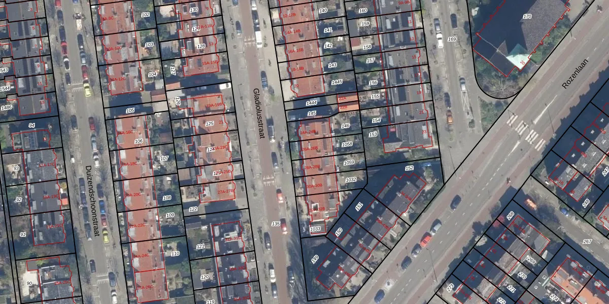 Gladiolusstraat 26-A is gelegen op kadastraal perceel HLG03H1058. Deze kadastrale aanduiding is uniek en wordt gebruikt door het Kadaster om eigendomsrechten en andere zakelijke rechten vast te leggen. Het perceel maakt onderdeel uit van de kadastrale gemeente Hillegersberg.