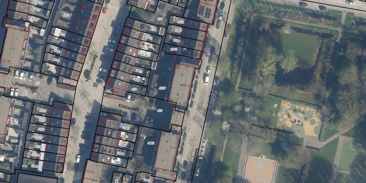 Het perceel waarop Goedenraadweg 63 staat heeft een oppervlakte van 859 m². Dit is een groot perceel. De perceeloppervlakte wordt geregistreerd door het Kadaster. Gedetailleerde informatie over de maten van dit perceel kunt u vinden in het rapport Kadastrale kaart met maatvoering van Goedenraadweg 63.