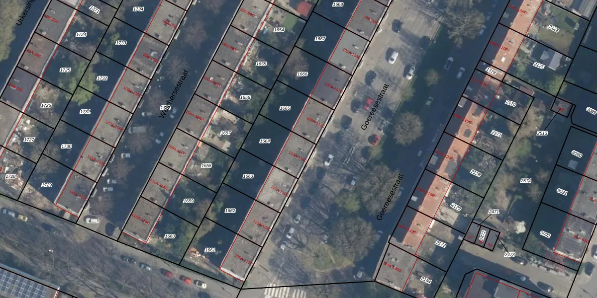 Goereesestraat 113-A is gelegen op kadastraal perceel CLS00H1664. Deze kadastrale aanduiding is uniek en wordt gebruikt door het Kadaster om eigendomsrechten en andere zakelijke rechten vast te leggen. Het perceel maakt onderdeel uit van de kadastrale gemeente Charlois.