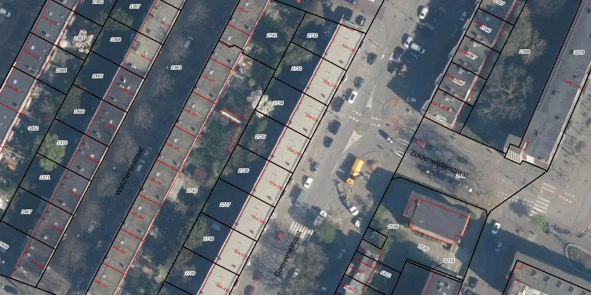 Goereesestraat 23-A is gelegen op kadastraal perceel CLS00H2735. Deze kadastrale aanduiding is uniek en wordt gebruikt door het Kadaster om eigendomsrechten en andere zakelijke rechten vast te leggen. Het perceel maakt onderdeel uit van de kadastrale gemeente Charlois.