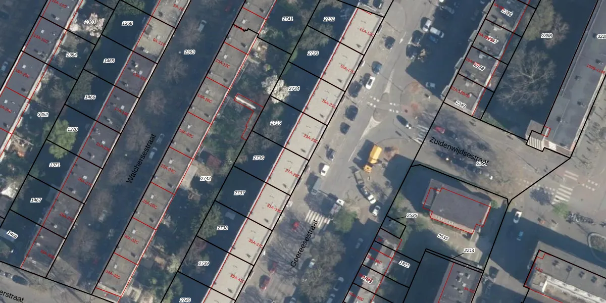 Goereesestraat 25-A is gelegen op kadastraal perceel CLS00H2735. Deze kadastrale aanduiding is uniek en wordt gebruikt door het Kadaster om eigendomsrechten en andere zakelijke rechten vast te leggen. Het perceel maakt onderdeel uit van de kadastrale gemeente Charlois.