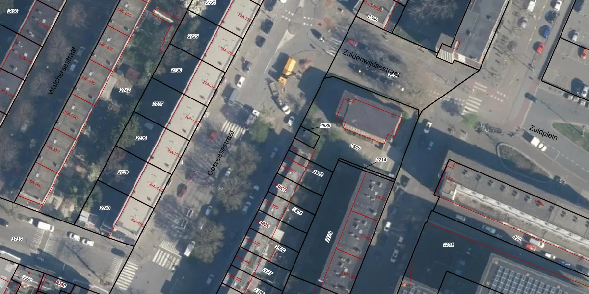 Goereesestraat 34 is gelegen op kadastraal perceel CLS00H2535. Deze kadastrale aanduiding is uniek en wordt gebruikt door het Kadaster om eigendomsrechten en andere zakelijke rechten vast te leggen. Het perceel maakt onderdeel uit van de kadastrale gemeente Charlois.