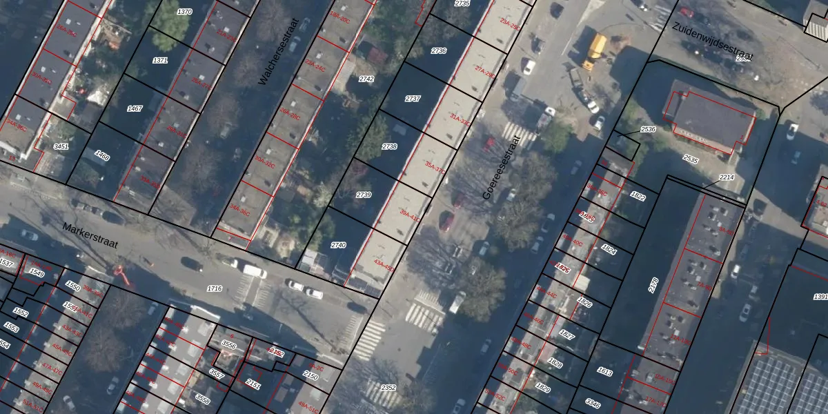 Het perceel waarop Goereesestraat 39-B staat heeft een oppervlakte van 279 m². Dit is een middelgroot perceel. De perceeloppervlakte wordt geregistreerd door het Kadaster. Gedetailleerde informatie over de maten van dit perceel kunt u vinden in het rapport Kadastrale kaart met maatvoering van Goereesestraat 39-B.