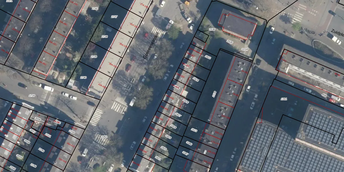 Goereesestraat 42-A is gelegen op kadastraal perceel CLS00H1825. Deze kadastrale aanduiding is uniek en wordt gebruikt door het Kadaster om eigendomsrechten en andere zakelijke rechten vast te leggen. Het perceel maakt onderdeel uit van de kadastrale gemeente Charlois.