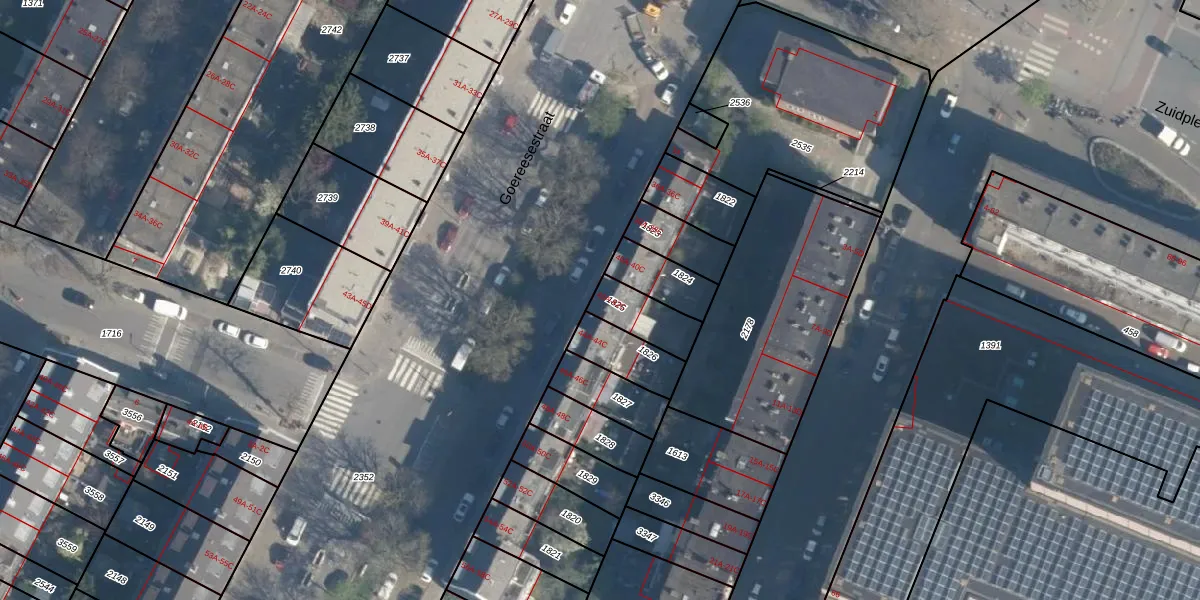 Goereesestraat 42-C is gelegen op kadastraal perceel CLS00H1825. Deze kadastrale aanduiding is uniek en wordt gebruikt door het Kadaster om eigendomsrechten en andere zakelijke rechten vast te leggen. Het perceel maakt onderdeel uit van de kadastrale gemeente Charlois.