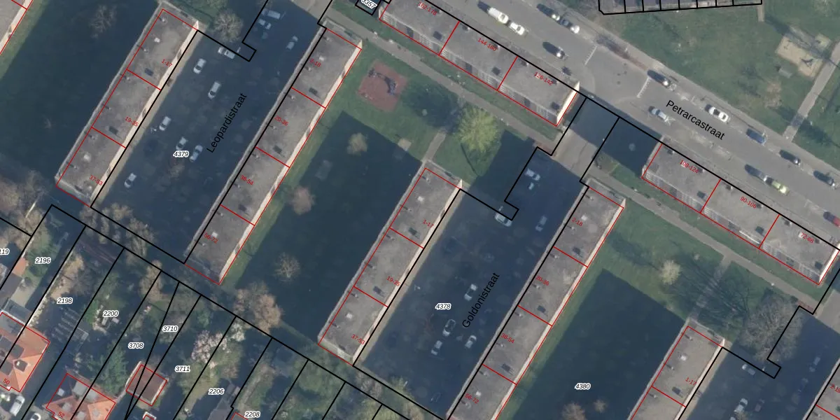 Het perceel waarop Goldonistraat 7 staat heeft een oppervlakte van 1,9 ha. Dit is een zeer groot perceel. De perceeloppervlakte wordt geregistreerd door het Kadaster. Gedetailleerde informatie over de maten van dit perceel kunt u vinden in het rapport Kadastrale kaart met maatvoering van Goldonistraat 7.