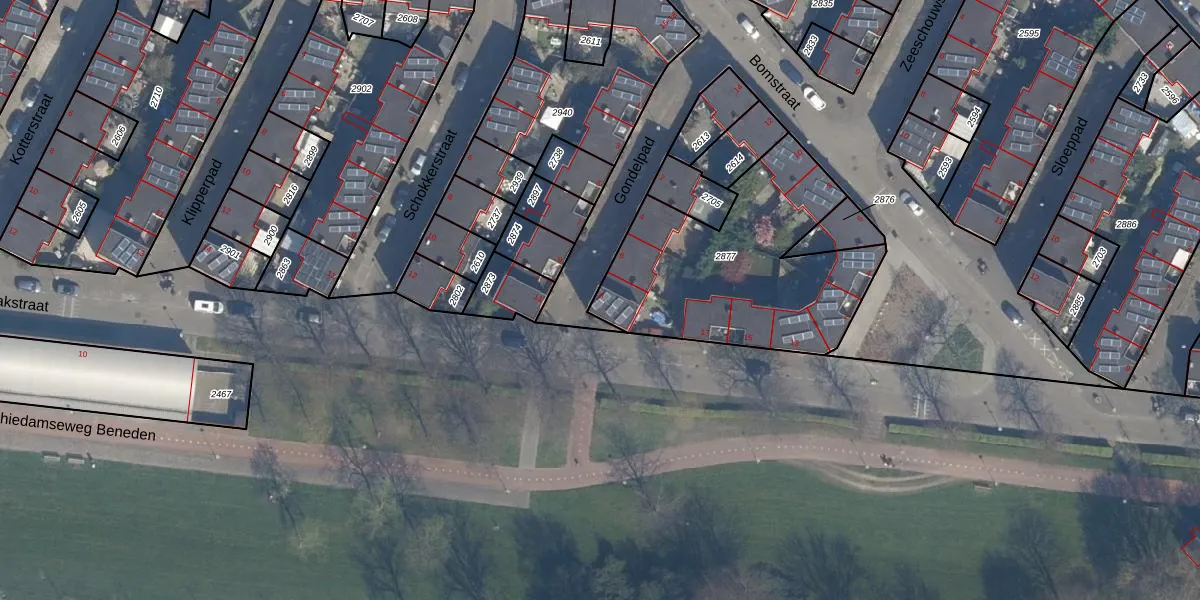 Het adres ligt op het perceel RTD10-AA-2877, dat zich in de kadastrale gemeente Rotterdam bevindt. Het perceel is 1011 m² groot. Dat is kleiner dan de gemiddelde perceeloppervlakte in Rotterdam, dat op 1602,8 m² ligt. De grootste perceeloppervlakte in de kadastrale gemeente is 30,3 ha. De kleinste oppervlakte bedraagt 0 m². Op het perceel liggen in totaal 10 adressen. In de Basisregistratie Kadaster (BRK) werden de grenzen van het perceel geregistreerd op 15-06-2012.