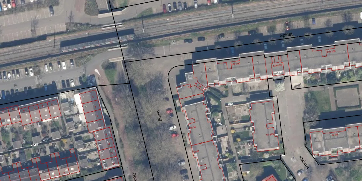 Gong 2 is gelegen op kadastraal perceel RTD13BA523. Deze kadastrale aanduiding is uniek en wordt gebruikt door het Kadaster om eigendomsrechten en andere zakelijke rechten vast te leggen. Het perceel maakt onderdeel uit van de kadastrale gemeente Rotterdam.