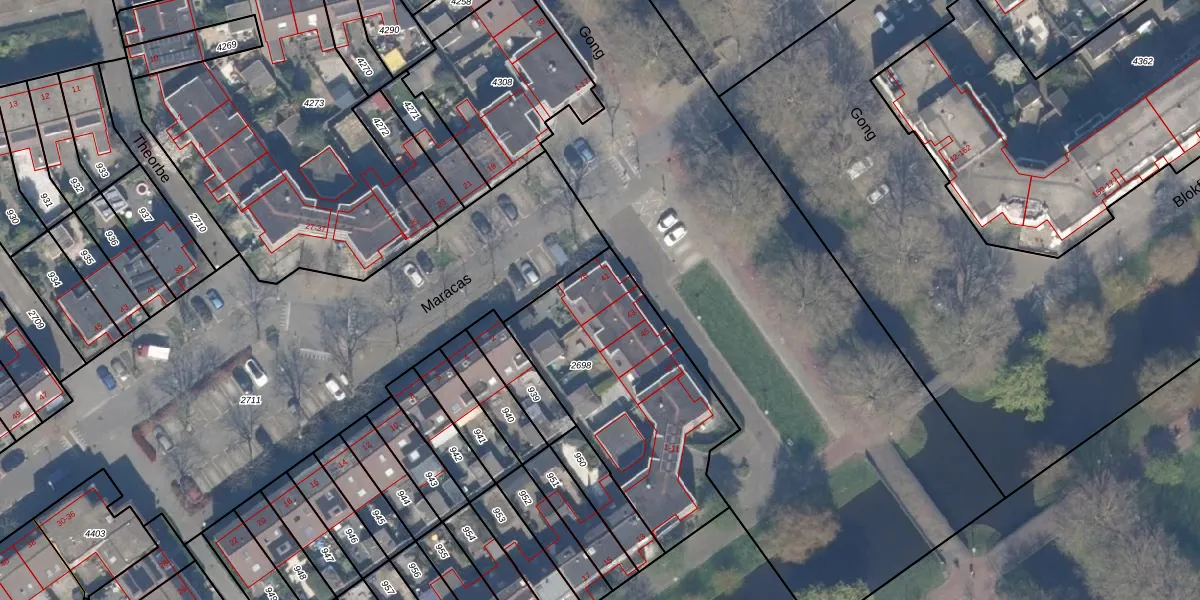 Het perceel waarop Gong 41 staat heeft een oppervlakte van 945 m². Dit is een groot perceel. De perceeloppervlakte wordt geregistreerd door het Kadaster. Gedetailleerde informatie over de maten van dit perceel kunt u vinden in het rapport Kadastrale kaart met maatvoering van Gong 41.