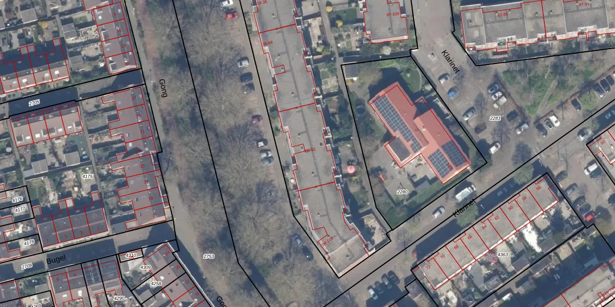 Het perceel waarop Gong 86 staat heeft een oppervlakte van 8745 m². Dit is een zeer groot perceel. De perceeloppervlakte wordt geregistreerd door het Kadaster. Gedetailleerde informatie over de maten van dit perceel kunt u vinden in het rapport Kadastrale kaart met maatvoering van Gong 86.