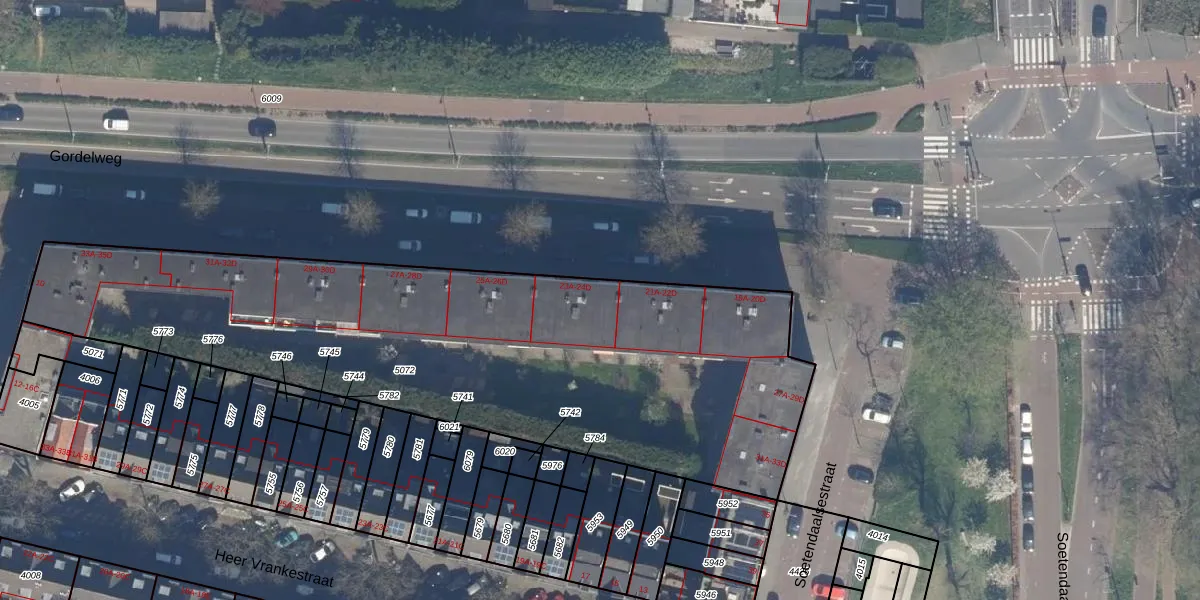 Gordelweg 23-A is gelegen op kadastraal perceel RTD09Y5072. Deze kadastrale aanduiding is uniek en wordt gebruikt door het Kadaster om eigendomsrechten en andere zakelijke rechten vast te leggen. Het perceel maakt onderdeel uit van de kadastrale gemeente Rotterdam.