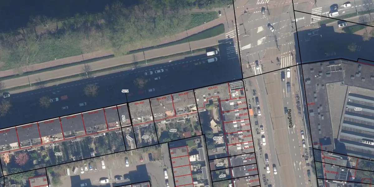 Het adres ligt op het perceel RTD09-Y-4894, dat zich in de kadastrale gemeente Rotterdam bevindt. De oppervlakte van het perceel is 600 m². Dat is groter dan gemiddeld in Rotterdam, waar de gemiddelde perceeloppervlakte op 443,14 m² ligt. De grootste perceeloppervlakte in de kadastrale gemeente is 7,0 ha. De kleinste oppervlakte bedraagt 0 m². Op het perceel zijn 16 adressen aanwezig. De laatste wijziging in het de Basisregistratie Kadaster (BRK) was op 21-07-2003.