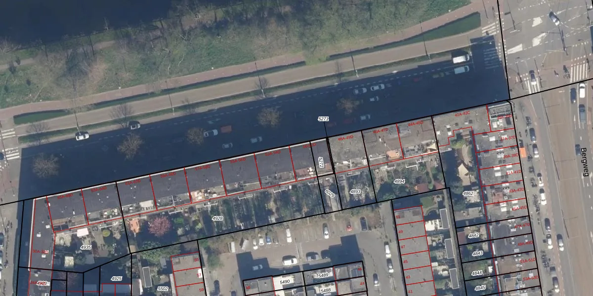Het adres ligt op het perceel RTD09-Y-4928, dat zich in de kadastrale gemeente Rotterdam bevindt. De oppervlakte van het perceel is 1677 m². Dat is groter dan gemiddeld in Rotterdam, waar de gemiddelde perceeloppervlakte op 443,14 m² ligt. De grootste perceeloppervlakte in de kadastrale gemeente is 7,0 ha. De kleinste oppervlakte bedraagt 0 m². Er zijn 47 adressen aanwezig op het perceel. In de Basisregistratie Kadaster (BRK) werden de grenzen van het perceel geregistreerd op 21-07-2003.