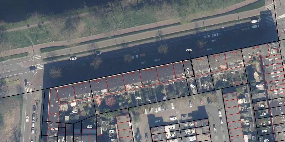 Het adres ligt op het perceel RTD09-Y-4928, dat zich in de kadastrale gemeente Rotterdam bevindt. De oppervlakte van het perceel is 1677 m². Dat is groter dan gemiddeld in Rotterdam, waar de gemiddelde perceeloppervlakte op 443,14 m² ligt. De grootste perceeloppervlakte in de kadastrale gemeente is 7,0 ha. De kleinste oppervlakte bedraagt 0 m². Op het perceel liggen in totaal 47 adressen. De laatste wijziging in het de Basisregistratie Kadaster (BRK) was op 21-07-2003.