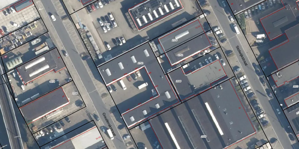 Het perceel waarop Gouderakstraat 38-B staat heeft een oppervlakte van 1833 m². Dit is een zeer groot perceel. De perceeloppervlakte wordt geregistreerd door het Kadaster. Gedetailleerde informatie over de maten van dit perceel kunt u vinden in het rapport Kadastrale kaart met maatvoering van Gouderakstraat 38-B.