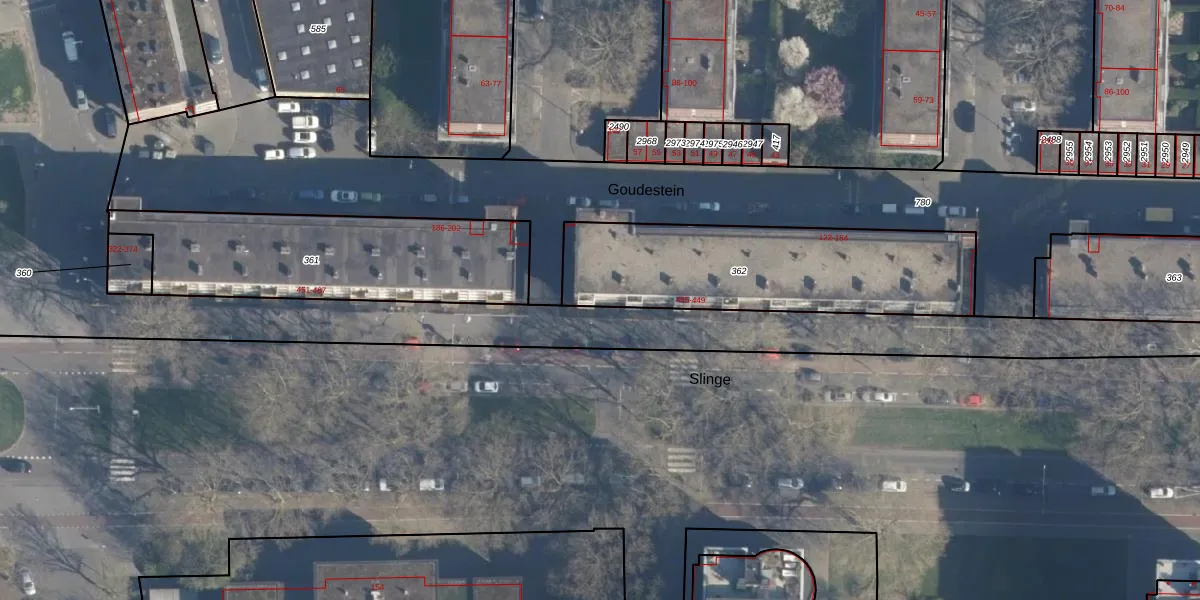 Het perceel waarop Goudestein 184 staat heeft een oppervlakte van 971 m². Dit is een groot perceel. De perceeloppervlakte wordt geregistreerd door het Kadaster. Gedetailleerde informatie over de maten van dit perceel kunt u vinden in het rapport Kadastrale kaart met maatvoering van Goudestein 184.
