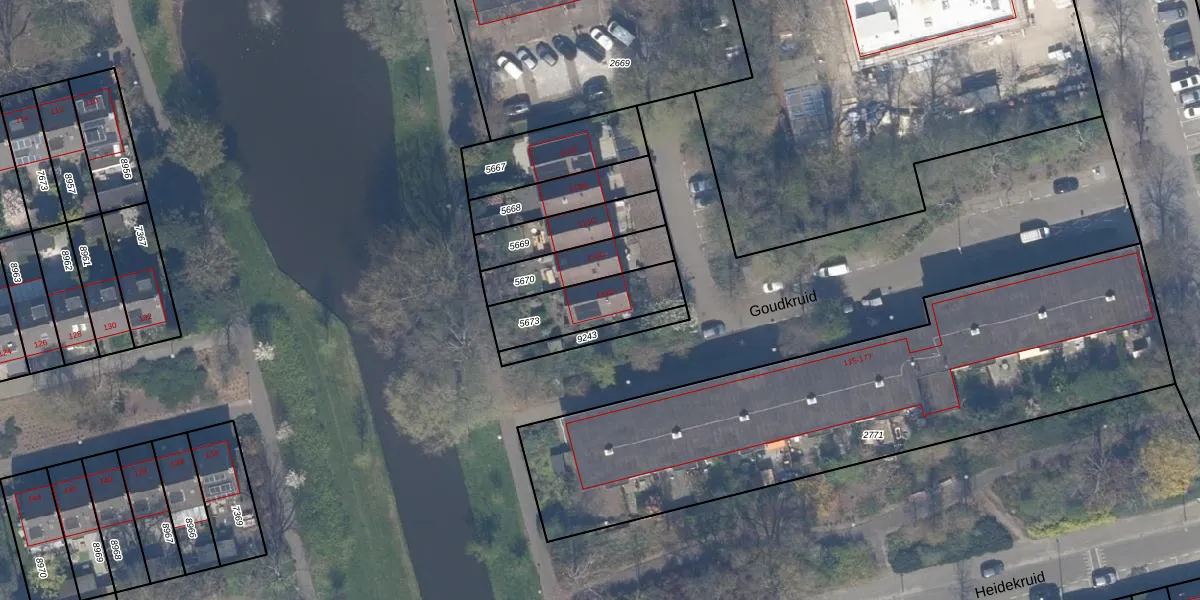 Goudkruid 111-E is gelegen op kadastraal perceel HLG03B5673. Deze kadastrale aanduiding is uniek en wordt gebruikt door het Kadaster om eigendomsrechten en andere zakelijke rechten vast te leggen. Het perceel maakt onderdeel uit van de kadastrale gemeente Hillegersberg.