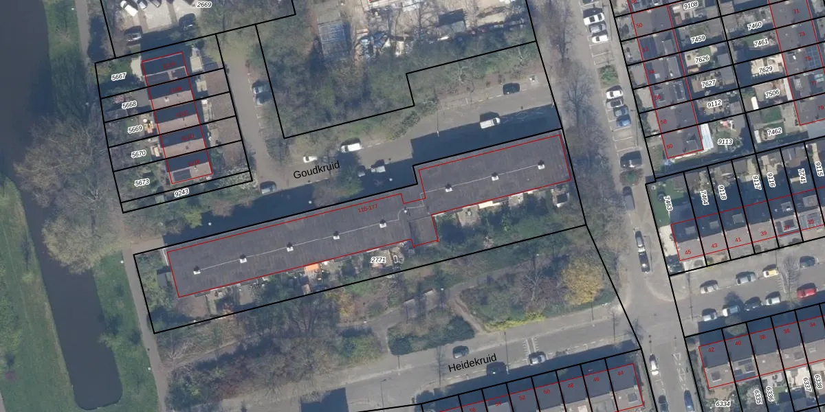 Het perceel waarop Goudkruid 141 staat heeft een oppervlakte van 2281 m². Dit is een zeer groot perceel. De perceeloppervlakte wordt geregistreerd door het Kadaster. Gedetailleerde informatie over de maten van dit perceel kunt u vinden in het rapport Kadastrale kaart met maatvoering van Goudkruid 141.