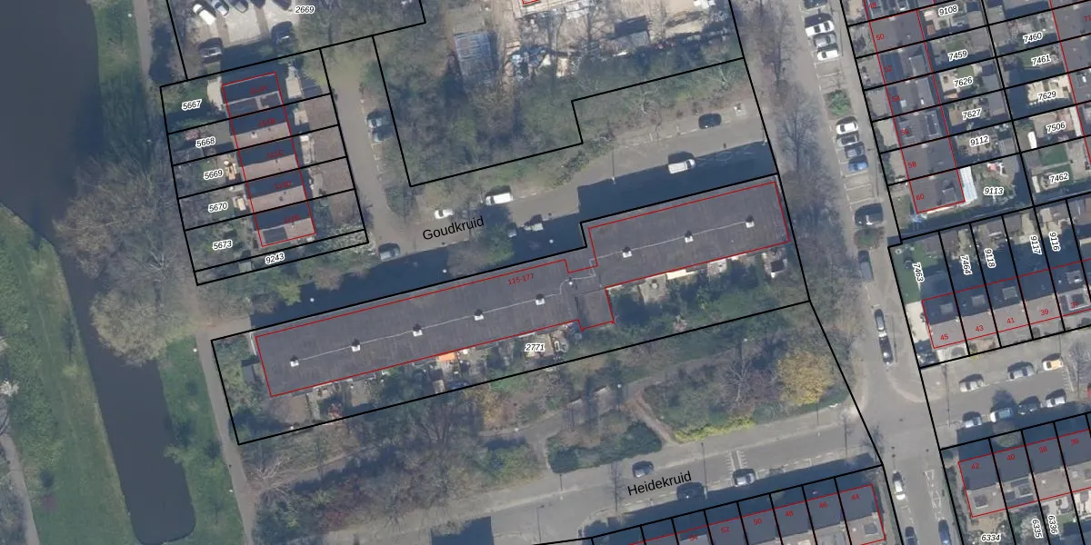 Het perceel waarop Goudkruid 159 staat heeft een oppervlakte van 2281 m². Dit is een zeer groot perceel. De perceeloppervlakte wordt geregistreerd door het Kadaster. Gedetailleerde informatie over de maten van dit perceel kunt u vinden in het rapport Kadastrale kaart met maatvoering van Goudkruid 159.