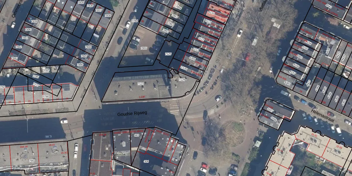 Goudse Rijweg 13-A is gelegen op kadastraal perceel RTD07R7123. Deze kadastrale aanduiding is uniek en wordt gebruikt door het Kadaster om eigendomsrechten en andere zakelijke rechten vast te leggen. Het perceel maakt onderdeel uit van de kadastrale gemeente Rotterdam.