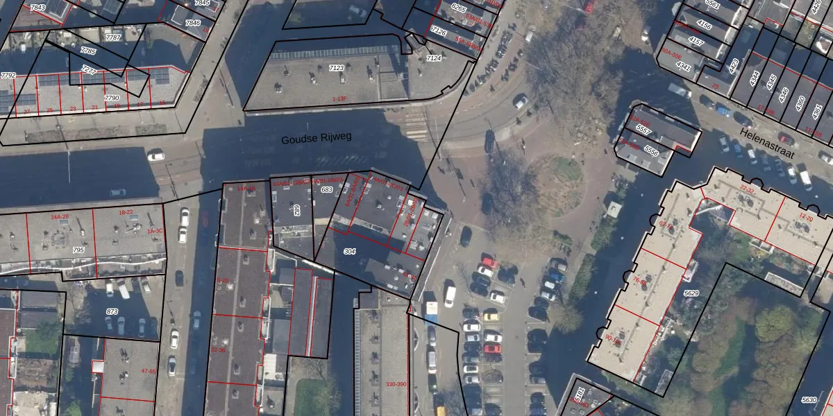 Goudse Rijweg 2-B-03 is gelegen op kadastraal perceel RTD04AE304. Deze kadastrale aanduiding is uniek en wordt gebruikt door het Kadaster om eigendomsrechten en andere zakelijke rechten vast te leggen. Het perceel maakt onderdeel uit van de kadastrale gemeente Rotterdam.