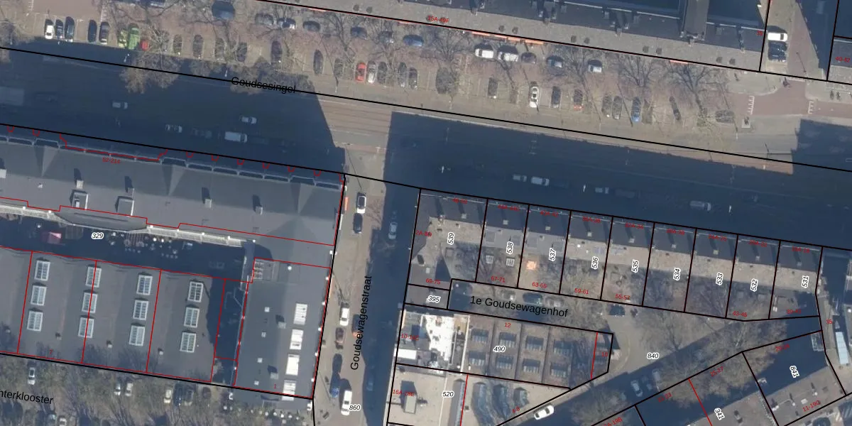 Het perceel waarop Goudsewagenstraat 2-E staat heeft een oppervlakte van 344 m². Dit is een groot perceel. De perceeloppervlakte wordt geregistreerd door het Kadaster. Gedetailleerde informatie over de maten van dit perceel kunt u vinden in het rapport Kadastrale kaart met maatvoering van Goudsewagenstraat 2-E.
