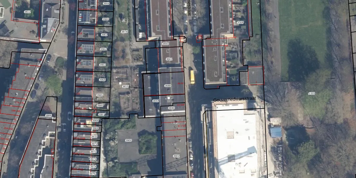 Het perceel waarop Gouvernestraat 51-C staat heeft een oppervlakte van 280 m². Dit is een middelgroot perceel. De perceeloppervlakte wordt geregistreerd door het Kadaster. Gedetailleerde informatie over de maten van dit perceel kunt u vinden in het rapport Kadastrale kaart met maatvoering van Gouvernestraat 51-C.