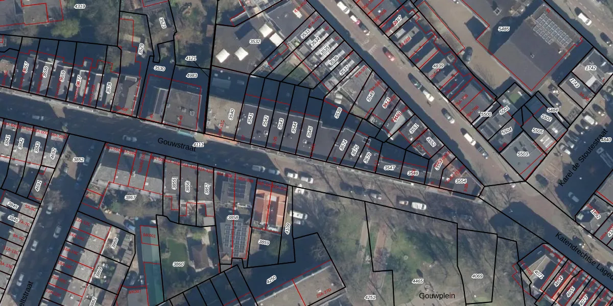 Gouwstraat 19-B is gelegen op kadastraal perceel CLS00E3545. Deze kadastrale aanduiding is uniek en wordt gebruikt door het Kadaster om eigendomsrechten en andere zakelijke rechten vast te leggen. Het perceel maakt onderdeel uit van de kadastrale gemeente Charlois.