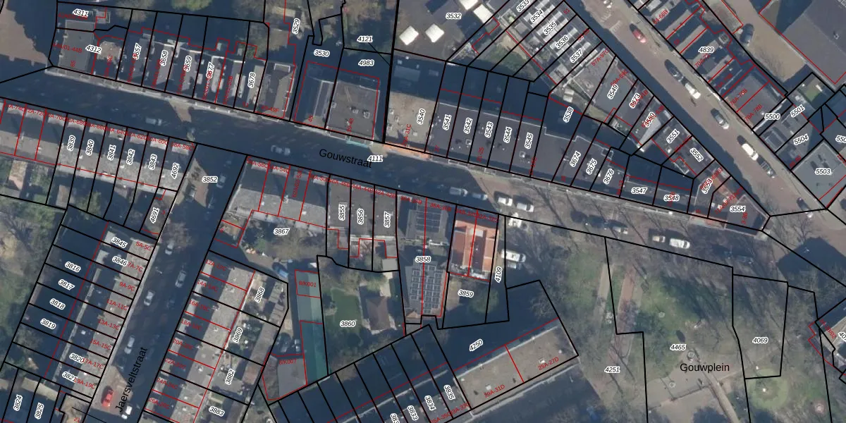 Gouwstraat 38-B is gelegen op kadastraal perceel CLS00E3858. Deze kadastrale aanduiding is uniek en wordt gebruikt door het Kadaster om eigendomsrechten en andere zakelijke rechten vast te leggen. Het perceel maakt onderdeel uit van de kadastrale gemeente Charlois.