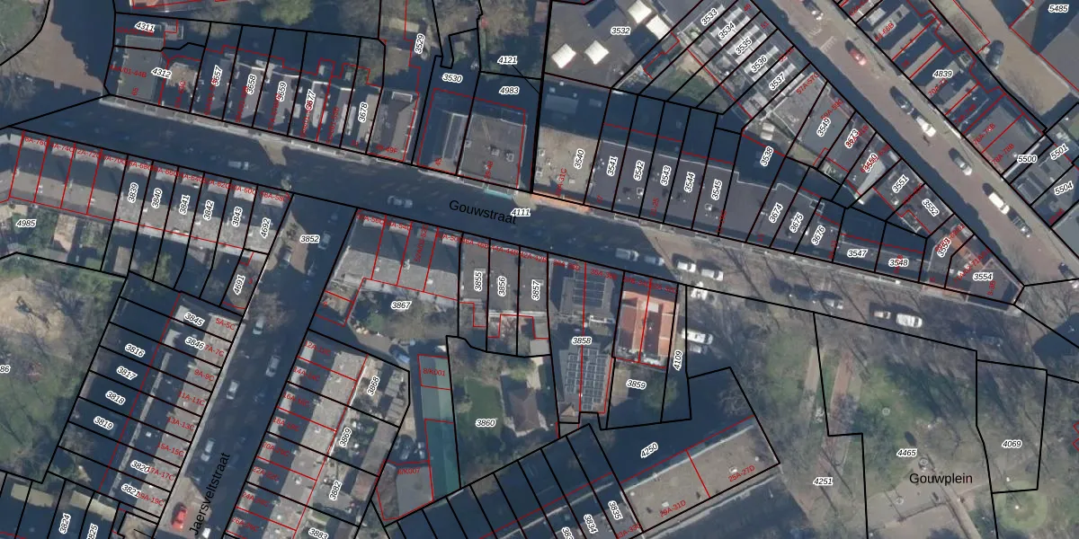 Gouwstraat 42-A is gelegen op kadastraal perceel CLS00E3857. Deze kadastrale aanduiding is uniek en wordt gebruikt door het Kadaster om eigendomsrechten en andere zakelijke rechten vast te leggen. Het perceel maakt onderdeel uit van de kadastrale gemeente Charlois.