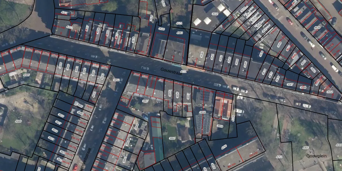 Gouwstraat 46-B is gelegen op kadastraal perceel CLS00E3855. Deze kadastrale aanduiding is uniek en wordt gebruikt door het Kadaster om eigendomsrechten en andere zakelijke rechten vast te leggen. Het perceel maakt onderdeel uit van de kadastrale gemeente Charlois.
