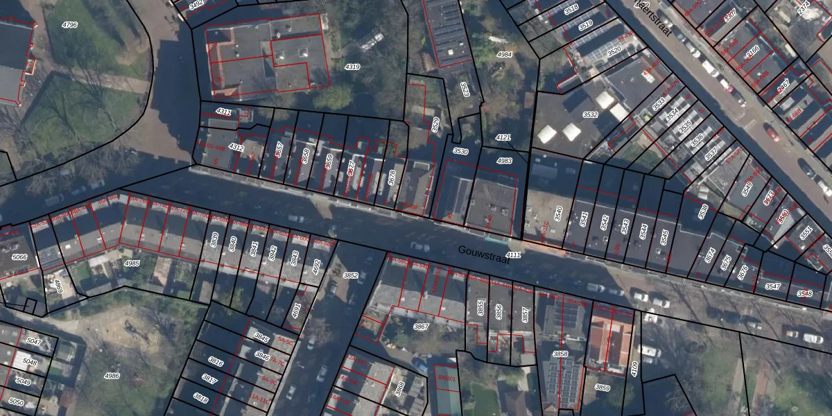 Gouwstraat 49-B is gelegen op kadastraal perceel CLS00E3529. Deze kadastrale aanduiding is uniek en wordt gebruikt door het Kadaster om eigendomsrechten en andere zakelijke rechten vast te leggen. Het perceel maakt onderdeel uit van de kadastrale gemeente Charlois.