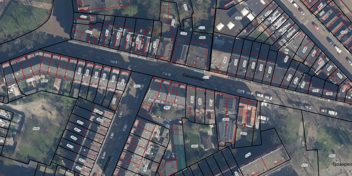 Gouwstraat 52-B is gelegen op kadastraal perceel CLS00E3867. Deze kadastrale aanduiding is uniek en wordt gebruikt door het Kadaster om eigendomsrechten en andere zakelijke rechten vast te leggen. Het perceel maakt onderdeel uit van de kadastrale gemeente Charlois.